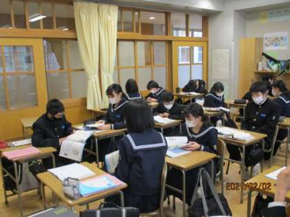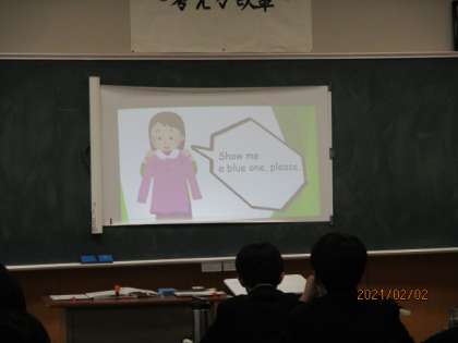 英語では、お店でシャツを買う場面で使用する英会話を練習しました。今日の学習をマスターすると、気に入った商品のサイズ違いの在庫確認をお願いしたり、「これを買います」と意思を表したりすることができるようになります。なかなかそのような場面に出会うことはありませんが、店員やお客になりきって練習に励みました。