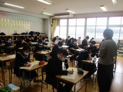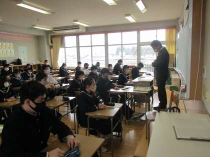 今日は、中学校の最後の学年末考査の範囲の発表となりました。高校へ進学すると履修しなくなる教科もあります。しっかりと計画を立てて学習してほしいと思います。