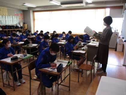 各教科ともテスト問題を想定して、最後の熱心な授業が続いています。授業と家庭学習がテスト対策の両輪です。最後の追い込みを頑張りましょう。