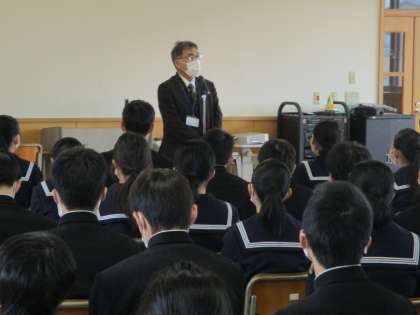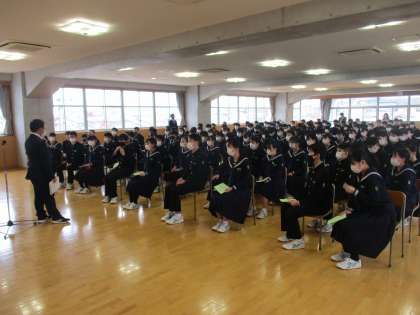 明日から始まる県立高校一般入試に向けて、集会を行いました。