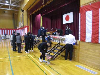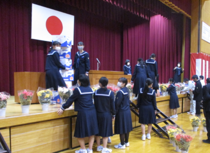 2年生は体育館の最終準備や最終点検、3年生フロアや保護者入り口等の清掃を担当しました。昨日に引き続き式当日のことを思いながら一生懸命準備をしてくれました。また、代表生徒は最後まで送辞の練習やピアノ伴奏の打合せや最終確認をしました。みんなの力で明日、すばらしい式になるといいですね。