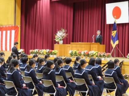 在校生代表の送辞では、コロナ禍で思うように過ごせなかった日々にも後輩の模範となった先輩への感謝の気持ちと伝統を受け継ぐ決意を述べました。3年生代表からの答辞では、3年間の思い出を振り返るとともに、特に最後の1年間はコロナ禍に影響を受けながら、出来る範囲で工夫して学校生活を送ってきたことを振り返り、これからも呉中プライドを胸に頑張っていこうと述べました。