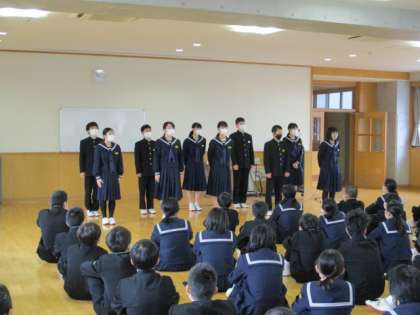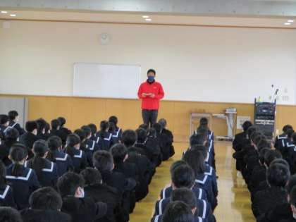 後半は、春休みに向けて学習と生活の各担当より話をしました。春休みを生かして、進級に向けた心と頭の準備をしていってほしいと思います。