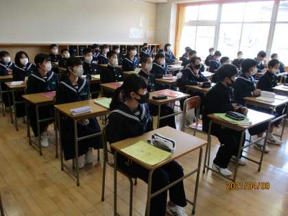 学級開きの今日。担任の先生の思いを伝えました。どの生徒も真剣にその話を聞き、学級の一員としての自覚を高めていたようです。提出物の回収をしたり当番の係を決めたりして、忙しい一日になりました。