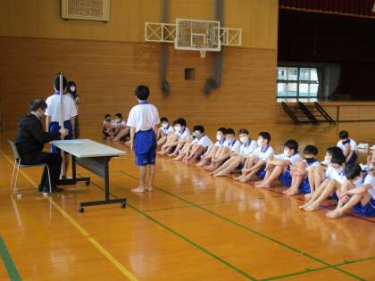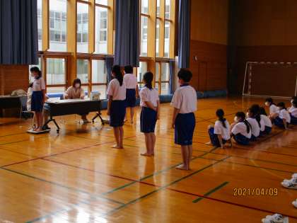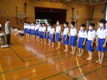 体育館での身体測定。どれだけ身長が伸びているかな・・・体重はどうかな・・・と思いながら測定を行いました。移動や待機中の静かさ、測定してくださる先生方へのしっかりとした挨拶、列を乱さない整列、これからも続けていけるように期待しています。