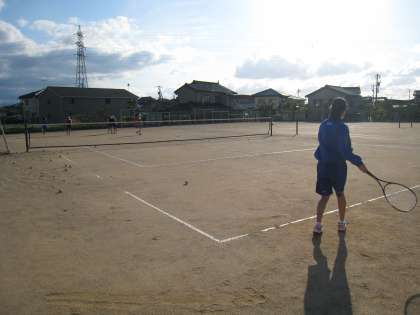 テニスコートで春の温かい日差しの中で、ボールを追いかけながら心地よい汗を流していました。