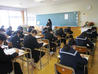 1限目に調査の受け方を再確認して調査にのぞみました。今までの学習した内容の学力調査でしたが、3年生初めての調査で、どの生徒も真剣な態度で取り組んでいました。明日は、社会、数学です。家庭でしっかりと勉強して明日も頑張りましょう。