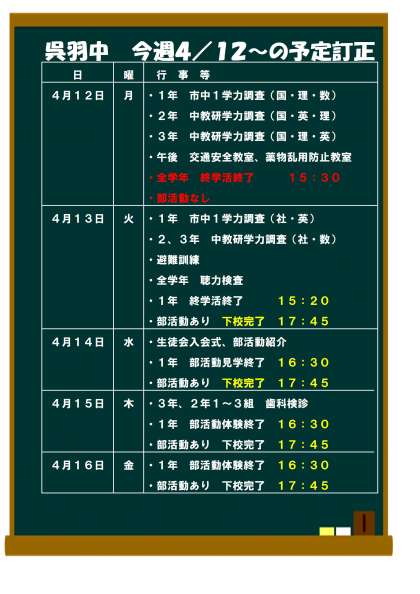 来週の予定4/12(月)〜訂正版