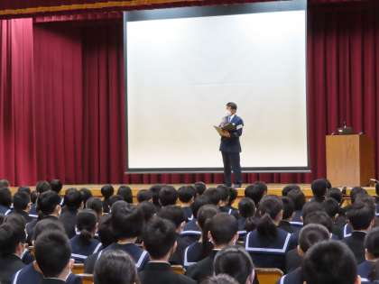 最後に、代表生徒が、教えていただいたことをこれからしっかり実践していきたいと述べました。呉中生全員で、有言実行していきましょう。
