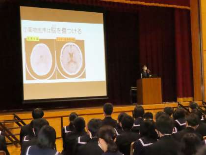 薬物乱用防止教室では、薬物には依存性・悪循環・フラッシュバック等の怖さがあり一生を左右すること、自分だけではなく周囲の人も巻き込むことになること、誘われた際の具体的な断りかた、酒やタバコにも同じような心配があるということなどを教えていただきました。