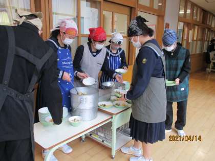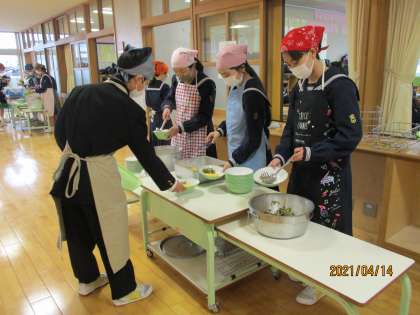 さすが2年生ともなるとてきぱきと配膳し、すぐに食べ始めることができます。