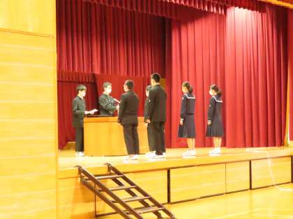 最後に1年生代表生徒が、2,3年生の先輩と力を合わせて生徒会の一員として力を発揮していきたい、と述べました。1年生を新メンバーに加えて全校で大いに活動を盛り上げましょう。