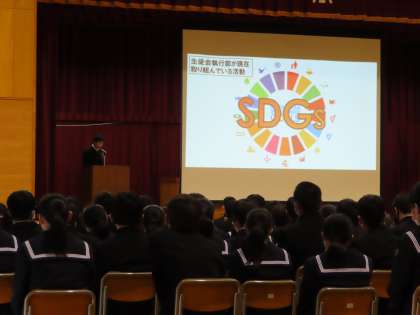 そして呉中生徒会がどのような活動を展開しているかを紹介しました。1年生に向けての説明でしたが、全校生徒が生徒会の意義や活動内容を確認する機会になりました。