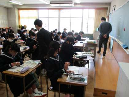 本格的に授業が始まってから1週間。小学校との違いもあり、戸惑う場面もみられましたが、ようやく慣れてきたようです。授業の初めと終わりの挨拶は、どのクラスもとても立派です。授業中も積極的に意見を述べています。