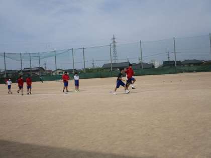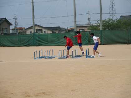 みんなでメニューをこなしながら個々の記録の向上に励んでいます。ランニングの途中にジャンプを織り交ぜる練習がしんどそうですが、みんなで声を掛け合いながら頑張っていました。