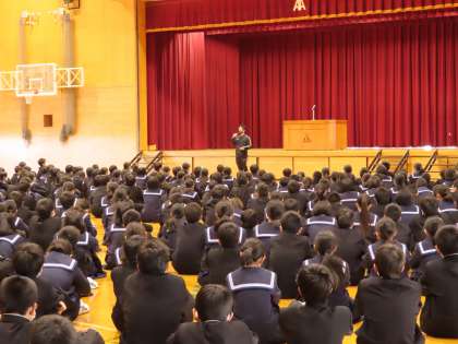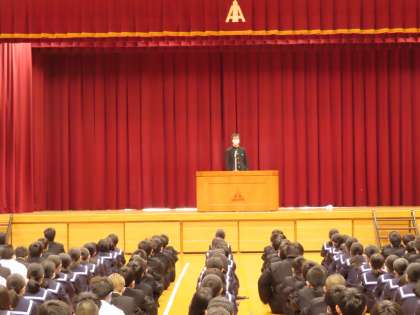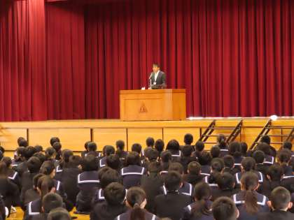続いて校長先生から、学校生活の中で自分の意志で決めて選ぶことのできる道を生かして自分を磨き、成長させてほしい、という言葉がありました。