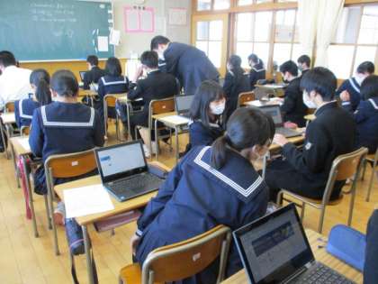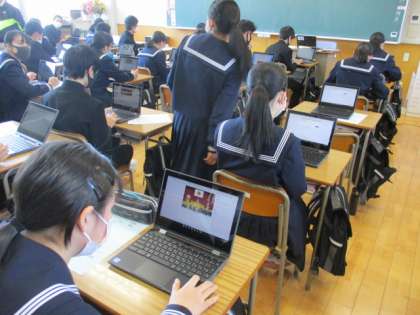 クロムブックを使用しての授業が行われました。
