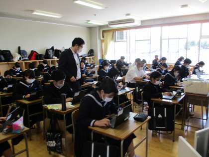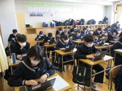 連休も終わり、久しぶりに登校しました。どの生徒も元気で、明るく授業に取り組んでいました。今日は、国語の単元テストをクロームブックを使って行いました。使い方が分からない生徒も先生に聞いて頑張っていました。また、放課後には教育相談を行っています。5月に入りましたが、自分の目標をしっかりと立てて部活動に学習に打ち込みましょう。