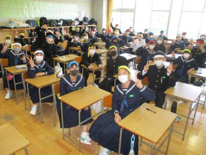 体育大会の学年団別集会を行いました。まずは団の発表。ドキドキしながら担任の先生からの発表を聞きました。学年代表も決まり、5月末に行われる体育大会に向けて、いよいよスタートです。色とりどりのハチマキを着けて、写真撮影パシャ!