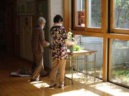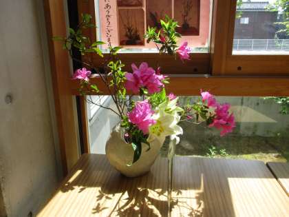 地域の有志の方が、定期的に学校に足を運び、生徒玄関に季節の花を飾ってくださっています。
