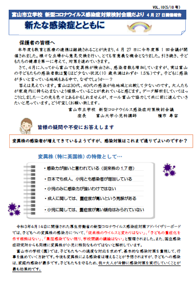 5月11日(火)感染症対策検討会議だよりvol10配付