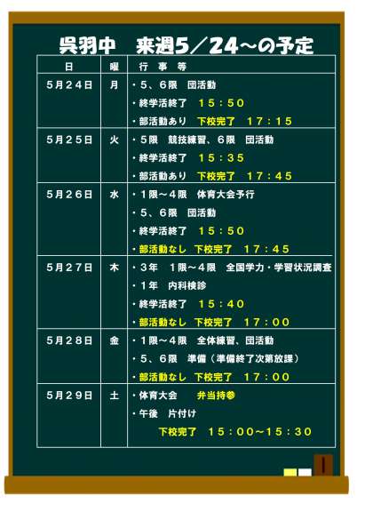 来週の予定5/24(月)〜