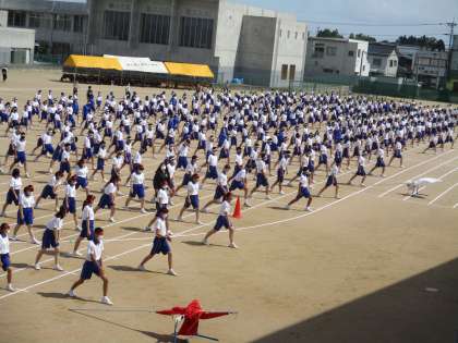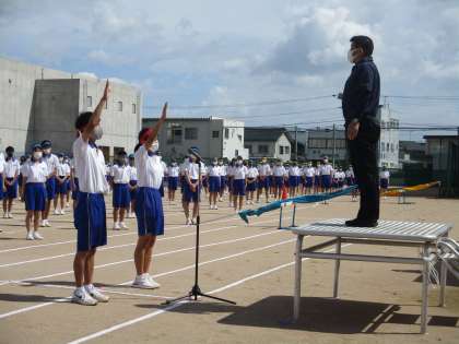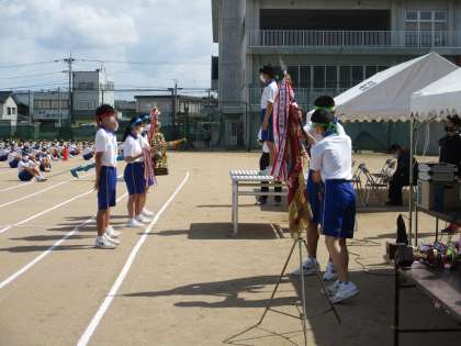 体育大会が迫ってきた中で、本日は五月晴れの爽やかな天気の下で予行練習を実施しました。開会式等は関係生徒とアナウンスのタイミングを確認しながら実施しました。