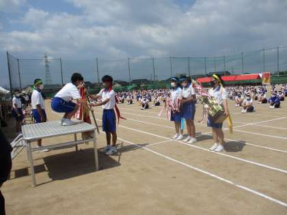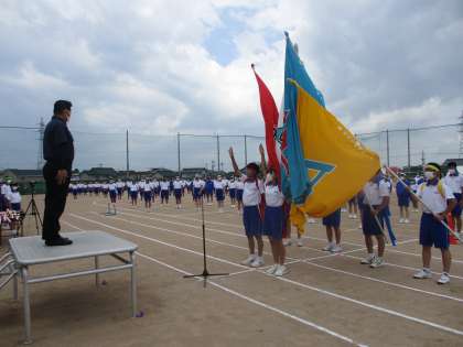 開会式は密を避けて、互いの距離をとって実施しました。厳粛な空気の中で、今から大会が始まるに当たって、士気を高めました。選手宣誓も力強く行いました。