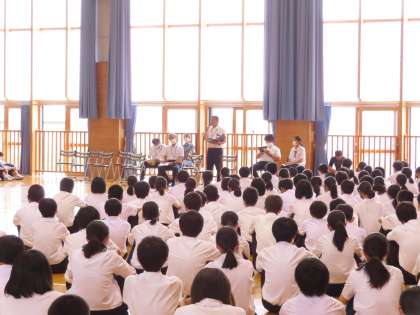 続いて校長先生からは、大会に向けて、しっかり自分なりに目標をもって、なりたい自分を実現できるように力を発揮してくるように、という言葉がありました。