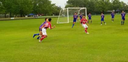 南総合運動公園での準々決勝に臨みました。降りしきる雨の中、悪コンディションをものともせず、一生懸命ボールを追いかけました。チーム一丸となって戦い切り、見事に昨秋の新人大会で敗れた相手に雪辱し、明日の準決勝に駒を進めました。