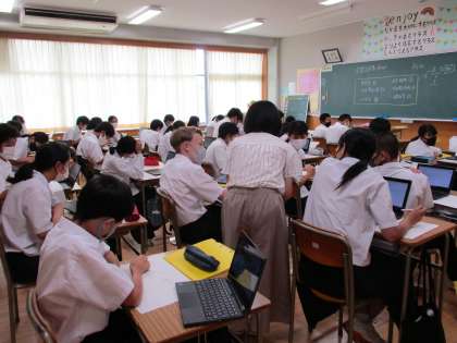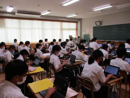 昨日の学年集会の話を受けて、今日から企業訪問に向けての調べ学習が始まりました。