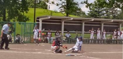 5点のビハインドをはねのけて逆転!その後、再逆転を許すものの、時間制限のため最終回となった6回裏に2点を取って、逆転サヨナラ!劇的な幕切れで「9−8」で見事に優勝に輝きました。