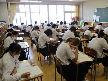 1学期の期末考査が始まりました。今日は、社会、数学、音楽でした。