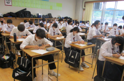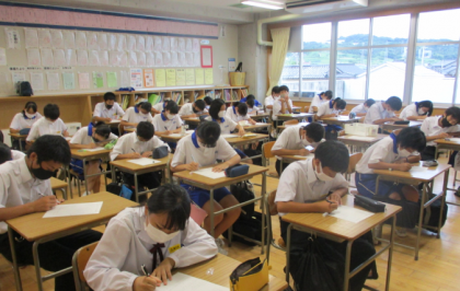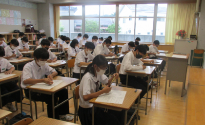 本日は終学活の時間を延長して、全クラス一斉にその問題に取り組みました。一つ一つのテストをやりっ放しにしないで、このように復習することにはとても大きな効果があります。全校のみんなにそういう振り返り、繰り返し取り組む習慣につながるといいですね。