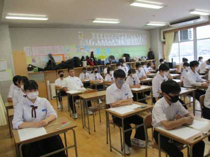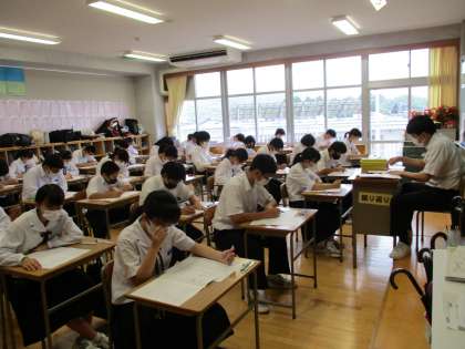 いよいよ進路に向けての実力テストが始まりました。テストの範囲は1年生からと広く、勉強も大変ですが、学力をつけるチャンスとなります。自分の不得意な部分を見つけ、夏休みに克服できるように頑張りましょう。