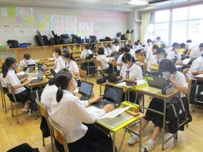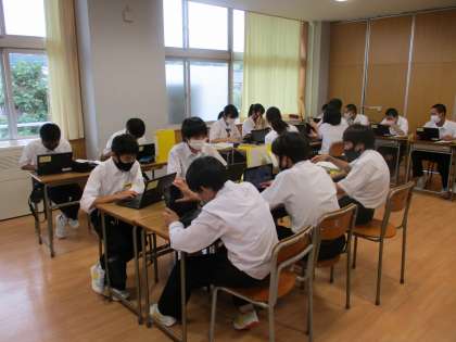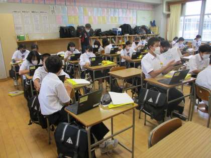 学校に戻った後、午後からは見学させていただいたり伺ったりしたお話を材料にして、クロムブックを活用してまとめました。残念ながら今年度は「14歳の挑戦」を実施できませんが、働く人たちの様子を見たり、直接お話を聞いたりできる貴重な経験になったと思います。