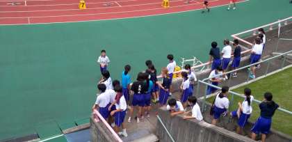 県総合運動公園陸上競技場で2日間に渡る熱戦が繰り広げられ、部員みんなで応援しながら団結して臨んでいます。