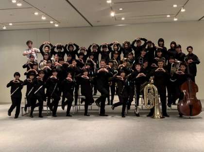 新川文化ホールでの大会に臨みました。心を一つにして、「天空への挑戦」を演奏しました。ホール内での撮影が禁止されているため、演奏後の集合写真です。みんなの晴れやかな表情が、手応えを表しています。見事に銀賞に輝きました。