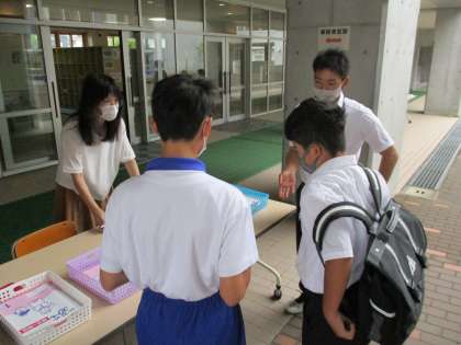 全校登校日・部活動が中止となり、友達との再会ができず残念に思っている生徒が多くいると思います。自分にできることを考え、一人一人がコロナ感染予防に努めましょうね!サマースクールの解答も配布しました。外出自粛の今だからこそ、勉強に励めるかも・・・