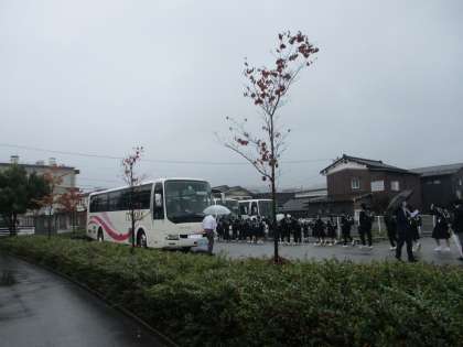 3年生は、5クラスが県内の4コースに分かれて、それぞれの目的地に向けて元気に出発しました。朝方は少し怪しい天候でしたが、午後にかけて天候は回復の見込み。秋の1日を満喫して、すてきな思い出となる旅行となるといいですね。
