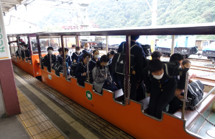 宇奈月トロッコ電車に乗って欅平に行って、紅葉の山を散策しました。朝方は寒かったですが、途中からは天候にも恵まれ、秋の紅葉を楽しみました。昼食後は、日本最古を誇る魚津水族館で、いろいろな魚や生き物を鑑賞しました。