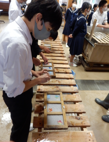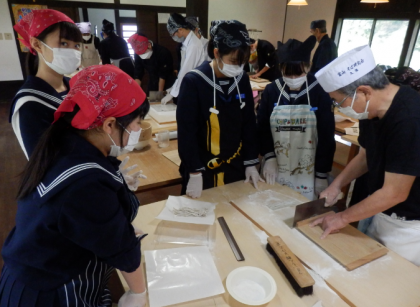 利賀村でそば打ち体験、瞑想の郷の散策をした後、五箇山で和紙作り体験をしました。四苦八苦しながら自分のだけの作品を作り、お土産にできました。そばは帰宅してから、それぞれの家でご家族と食べるのでしょうか。