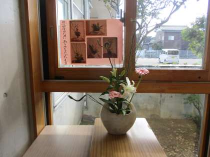 地域の有志の方が、定期的に季節のお花を生徒玄関で生けてくださっています。