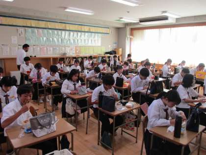 (中写真1組)(右写真2組)本日は給食ではなく、お弁当でした。朝早くからのご準備ありがとうございました。生徒たちは、うれしそうに頬張っていました!