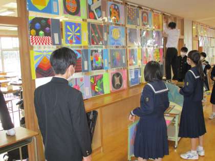 また、終礼後「絵本の世界展」「立体を感じるデザイン」「幼児の絵本」の作品展示を行いました。どの作品も目を見張る作品で、明日の展示見学では、じっくりと味わって鑑賞してくださいね。