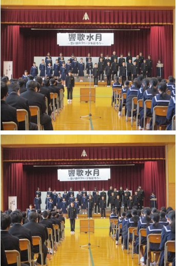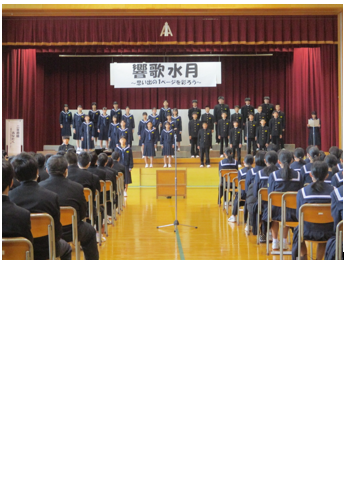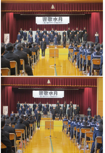 2学年の合唱です。各クラスで実行委員を中心に話し合ったりしながら、工夫をして積み重ねてきた練習の成果を、思う存分発揮しました。