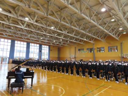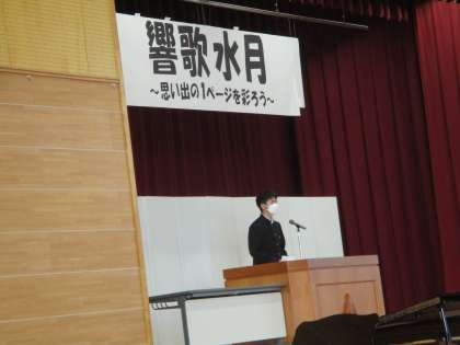 最後に全員で校歌を斉唱しました。【「響歌水月」〜思い出の1ページを彩ろう〜】を合い言葉にした1日の最後をしめくくるにふさわしい歌声が体育館響きました。