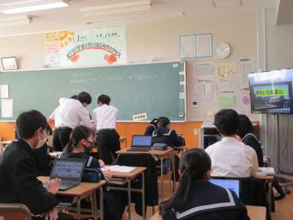 互いに作成したポスターを見て、表現の違いを楽しんでいました。