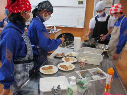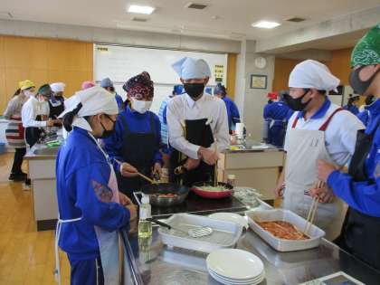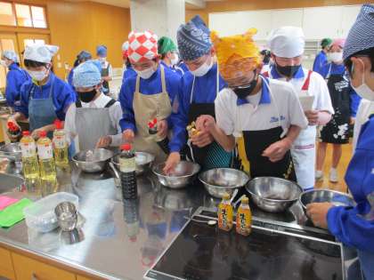 今週は1学年全クラスで、家庭科の調理実習を行います。実習内容は「豚肉の生姜焼き」です。班員と協力しながら、準備から後片付けまでを手際よくできました。お腹も心も満たされましたね!