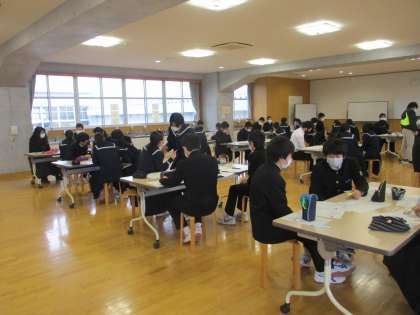 先週から始まっているいじめ対策ソーシャルワーカーの神通先生による「元気回復行動プラン」講習会で、本日は3年生の4つのクラスが受講しました。元気になるための方法、ストレスの対処方法、相談相手等、日頃あまり意識してないことも言語することで、心に刻み込み、いざというときに活用できるようになるのだと思います。これからの生活や人生の中で活用できるといいですね。